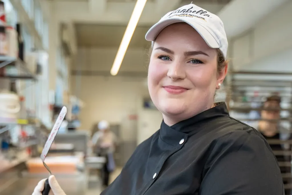Der Start unseres Betriebes begann recht holprig mit der Zöliakie-Diagnose unserer Inhaberin Isabella. Im Klartext: glutenhaltige Lebensmittel waren für sie nun Geschichte. All die Jahre war Essen selbstverständlich, doch heute ist es kompliziert. Isabella stellte sich der Herausforderung und schaffte eine Motivation für jeden anderen in ihrer Lage. Nach einem beschwerlichen Weg und vollem Einsatz gründete sie in Düsseldorf ihr erstes Café. Der Einsatz hat sich gelohnt, das Projekt wurde zu einem vollen Erfolg. So ging es Schlag auf Schlag und die Pâtisserie wuchs stetig weiter. Sie zeigte: Auch glutenfrei geht lecker! Heute beschäftigt Isabella Glutenfreie Pâtisserie 100 Mitarbeiter an 9 verschiedenen Standorten verteilt in ganz Deutschland. Unter anderem in Städten wie Hamburg, Aachen, Stuttgart, Köln und natürlich Düsseldorf – dem Ort, an dem alles begann. Isabellas Lebenswerk wächst und wächst weiter. Vielleicht befindet sich schon bald in deiner Stadt eine ihrer glutenfreien Pâtisserien.
